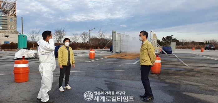 신 소장과 방역 관계자들은 지난 9일 만경강 철새도래지와 거점소독시설 및 용지밀집사육지역 통제초소 방역현장을 찾아 소독방식과 시설, 인력 등을 점검하고 근무자를 격려했다.