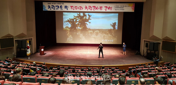 | ▲ 26일 솜리문화예술회관에서 익산시 공무원들을 대상으로 팝페라 청렴 콘서트가 진행되고 있다(사진제공=익산시) |
