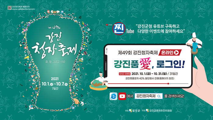 한편, 강진군은 강진청자축제 홈페이지를 통해 강진 추억여행 사진 공모전, 유튜브 댓글 이벤트, SNS 공유 이벤트 등 제49회 강진청자축제를 알리기 위한 적극 홍보에 나서고 있다.