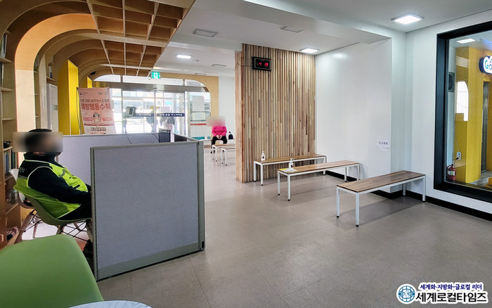 | ▲김제시 터미널에서 방역일자리 사업 참여자가 근무하고 있다 (세계로컬타임즈 DB) |