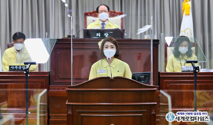 | ▲14일 제236회 익산시의회 임시회 본회의에서 5분발언을 진행하고 있는 오임선 의원. ⓒ익산시의회 |