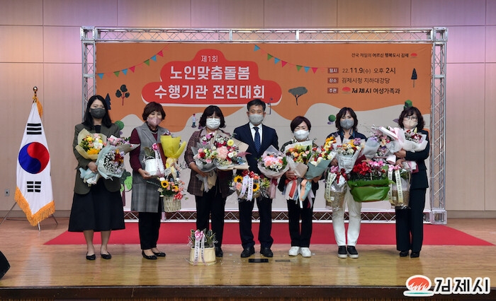 정성주 김제시장은 “코로나19라는 상황 속에서도 지역의 어르신들을 위해 따뜻한 마음으로 돌봐주신 노인맞춤돌봄 종사자분들의 노고에 감사드린다”며 “전국 제일의 어르신 행복도시 김제시를 만들기 위해 앞으로도 많은 도움을 주시길 부탁한다“고 당부했다.
