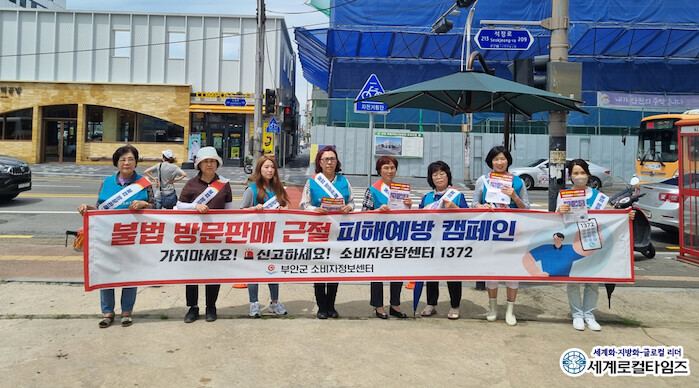 [세계로컬타임즈 조주연 기자] 전북 부안군소비자정보센터(이하 센터)가 불법적인 방문판매 영업활동 예방을 위한 길거리 캠페인이 펼쳤다.