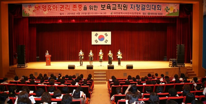 이날 자정결의대회와 인성교육에는 대전시 관내 보육교직원 600명이 참석했다.