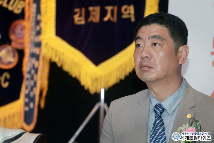 [세계로컬타임즈 글·사진 조주연 기자] 국제라이온스협회 356-C지구 군산라이온스클럽 최원일 회장이 지난 9일 김제라이온스클럽 창립 제55주년 기념식 및 회장 이·취임식에 참석했다.