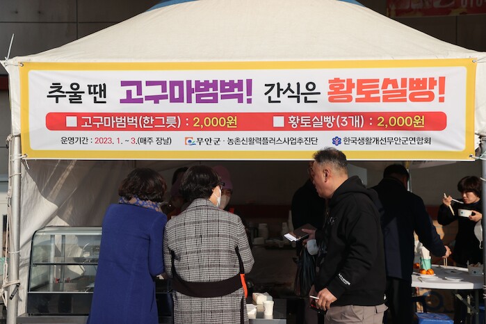 서명호 농정과장은 “앞으로도 1월부터 3월까지 무안장날(4일, 9일)마다 16회 운영할 계획이며, 무안맛탕축제를 더욱 내실있게 발전시켜 나가고 고구마범벅과 황토실빵이 전국적으로 알려질 수 있도록 홍보와 지원에 최선을 다해 나가겠다”고 밝혔다.