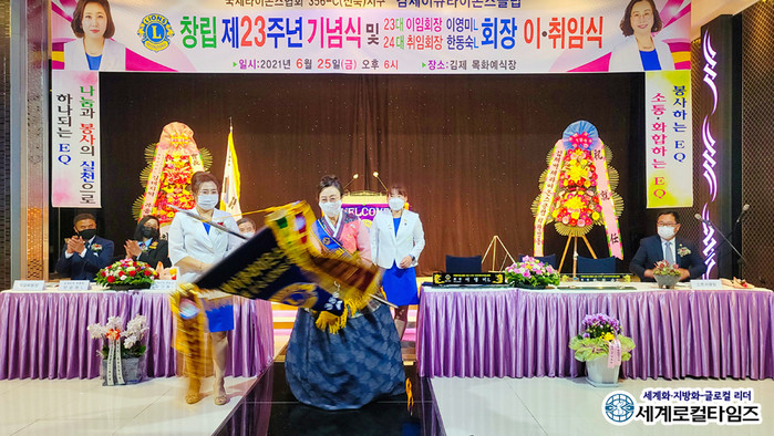 [세계로컬타임즈 글·사진 조주연 기자] 국제라이온스협회 356-C 지구 김제EQ라이온스클럽이 25일 창립 제23주년 기념식을 개최하고 제24대 한동숙 신임회장이 취임했다.