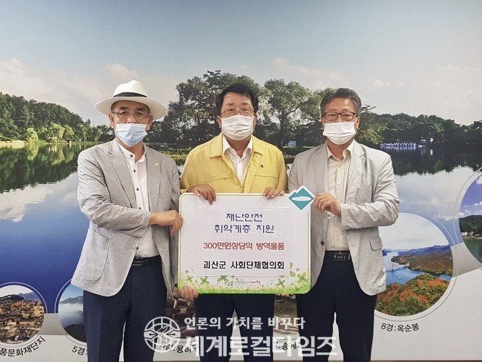 [세계로컬타임즈 조주연 기자] 충북 괴산군 사회단체장협의회(이하 협의회)가 제천시에 코로나19 등과 관련한 방역물품을 기탁했다.