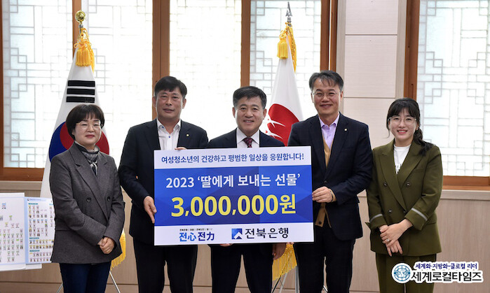 김제시에 따르면 강장오 김제지점장은 “‘2023 딸에게 보내는 선물’이라는 사업명으로 저소득가정 여성청소년 보건위생용품 지원을 통해 경제적 어려움을 겪는 이들에게 꿈과 희망을 전하고 앞으로도 건강하게 성장할 수 있도록 도와 누구에게나 따뜻한 금융 실현을 위해 앞장서고자 준비했다”고 말했다.
