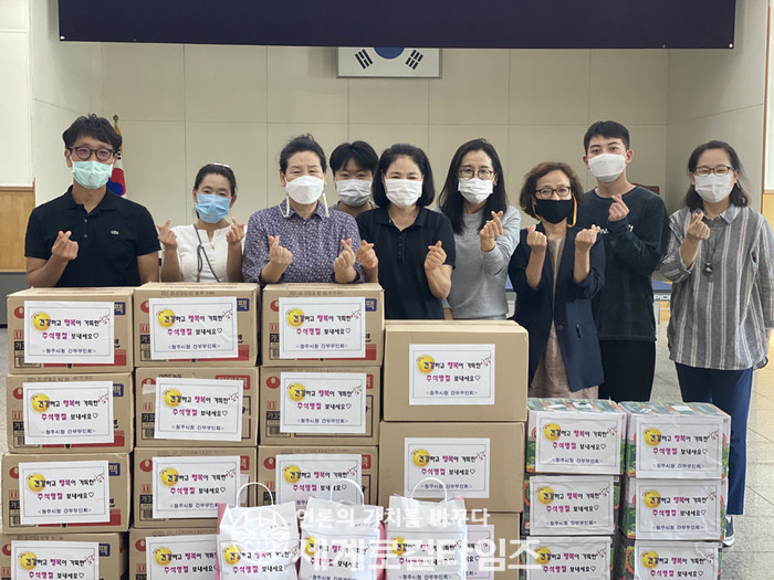 26일 청주시에 따르면 연말 떡국 떡 판매 수익금으로 250만 원 상당 식료품을 마련한 간부부인회가 추석을 맞아 장애인거주시설 10곳을 방문해 위문품을 전달하고 종사자들을 격려했다.
