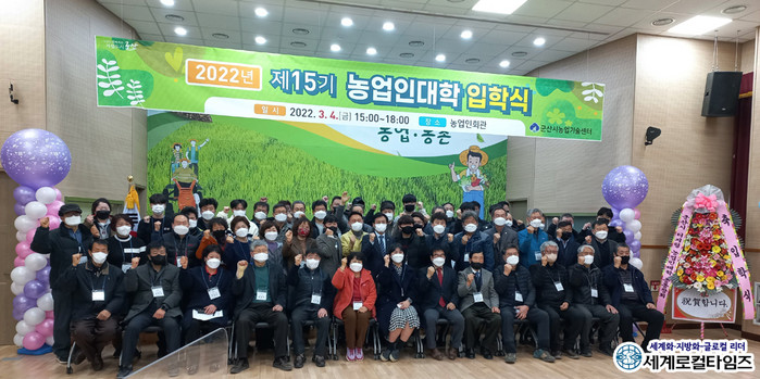 5일 군산시에 따르면 지난 4일 농업인회관 강당에서 농업인대학 농업기술 전문자격증반 입학생과 관계자 등 60여명이 참석한 가운데 농업기술센터 제15기 농업인대학 입학식이 있었다.