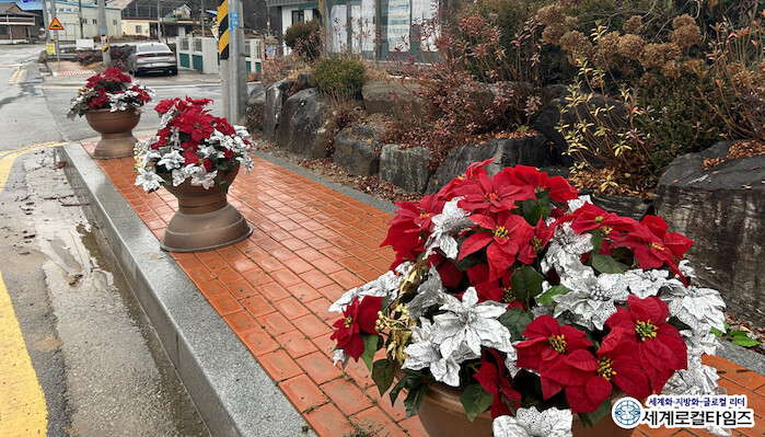 1일 임실군에 따르면 최근 삼계면 일부 도로변에 깨끗하고 아름다운 거리 조성을 위해 인조 꽃인 포인세티아 망사포인과 열매포인을 화분 40개에 식재됐다.