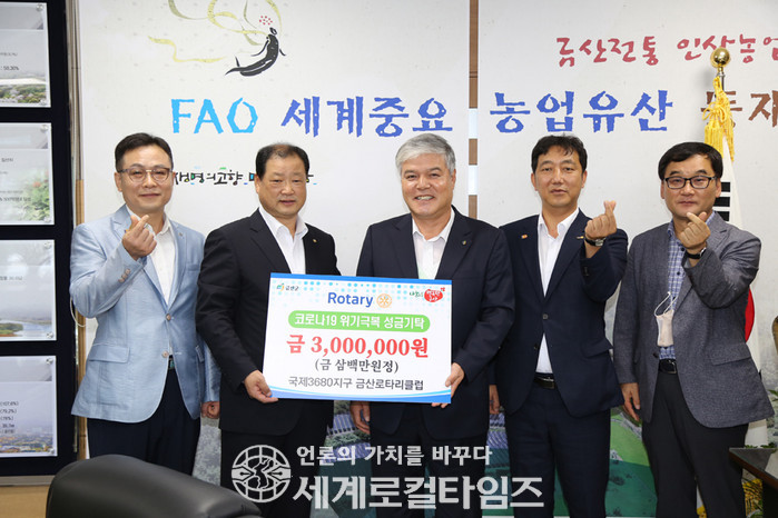 [세계로컬타임즈 조주연 기자] 국제3680지구 금산로타리클럽이 '코로나19 위기극복 성금'을 기탁했다.