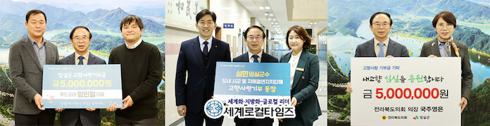 심민 군수는 “고향을 사랑하는 마음과 임실군을 응원해주시는 마음을 주신 기부자분들께 감사드린다”며“보내주신 마음이 임실에 사는 주민들에게 잘 전달되고, 지역발전과 주민 복리증진을 위해 소중하게 쓰겠다”고 말했다.
