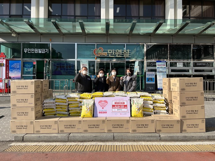 [세계로컬타임즈 김상우 기자] 안산시는 22일 ㈜삼성에프씨(대표 안종호)로부터 사랑의 쌀 10kg 100포와 과자선물세트 200개를 기탁 받았다.
