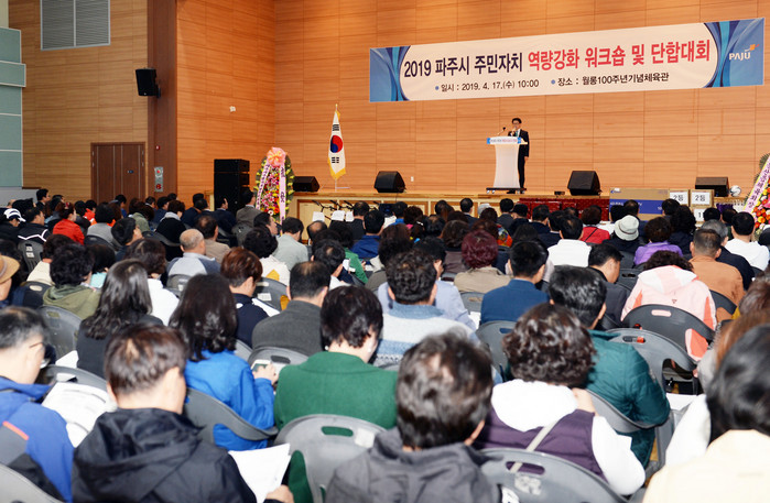 [세계로컬타임즈 추현욱 기자] 파주시는 각 읍·면·동 주민자치위원 및 관계 공무원 등 350여명이 참여한 가운데 ‘2019년 파주시 주민자치 역량강화 워크숍 및 단합대회‘를 개최했다.