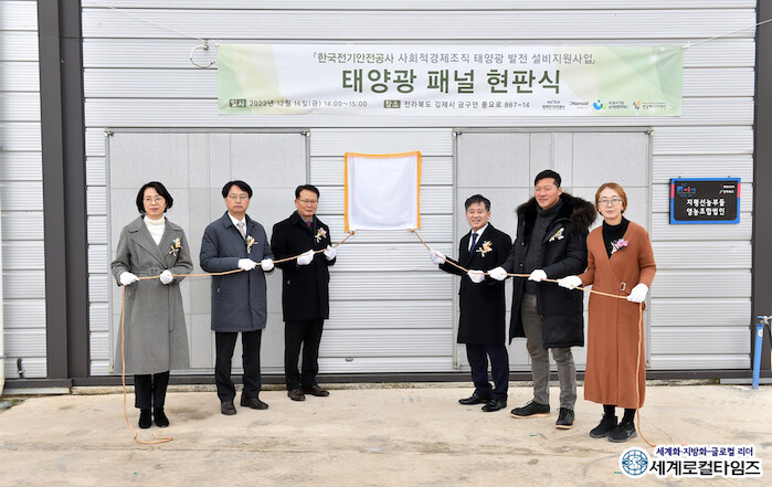 금구면에 위치한 한 마을기업에서 지난 16일, 정성주 김제시장, 한국전기안전공사 박지현 사장, 한국에너지재단 박지영 경영지원처장 등이 참석한 가운데 현판식이 진행됐다.