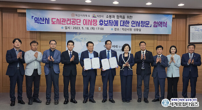 최종오 의장은 “이번 협약은 익산시 도시관리공단 이사장 임명과정에서 공정성과 투명성을 높이자는 것”이라며 “도덕적 기준에 부합하고 합리적 업무수행 능력이 입증된 분이 중용돼 우리 시민들에게 기쁨과 행복을 주는 공단으로 성장할 수 있기를 기대한다”고 말했다.