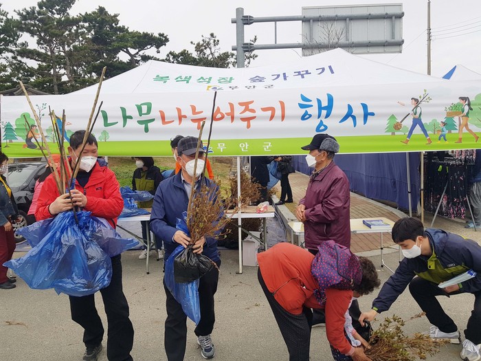 군은 제77회 식목일을 맞아 산림의 가치와 나무의 중요성을 알리기 위해 무안읍 불무공원과 해제면 장터입구 등 2곳에서 무안군 산림조합과 함께 행사를 개최했으며 감나무, 황칠나무, 철쭉. 모과나무, 매실 등 5종 4,500본을 나눠 호응을 얻었다.