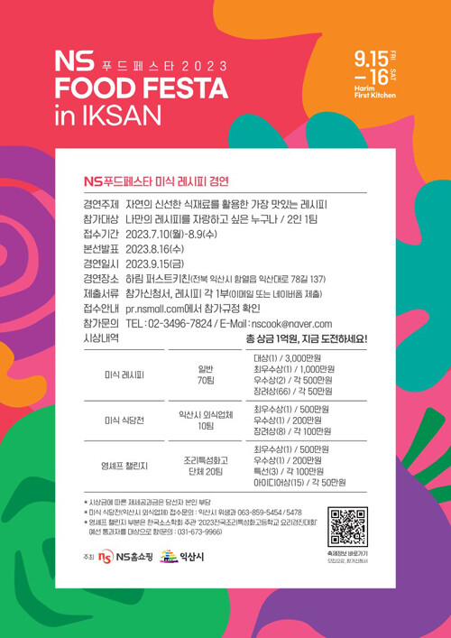 박경희 위생과장은 “국내 최대 요리경연대회인 NS푸드페스타에서 특별부문인 익산 식당을 대상으로 한 미식식당전에 많은 익산 외식업체들이 참가하기 바란다”며 “익산 맛집을 널리 알리고 관광자원을 육성하는 계기로 만들겠다”고 말했다.
