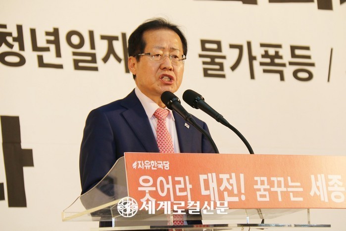 [세계로컬신문 오영균 기자] 홍준표 자유한국당 대표가 10일 대전 서구 도솔다목적체육관에서 6·13지방선거 필승결의대회를 펼치면서 박성효 전 시장과 허태정 전 구청장을 비교해 대학생과 유치원생 수준이라며 "나는 박성효가 대전시장에 압승할 수 있다"고 피력했다.