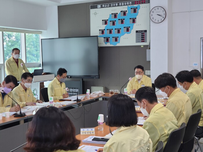 구복규 군수는 “강풍과 집중호우로 인한 인명피해를 예방하는 것을 최우선으로 해야 한다”며 “위험지역에 대한 사전 예찰 활동과 안전조치를 강화하고 침수와 산사태 위험지역과 시설, 농작물과 정전피해 예방 등에 철저히 대비하라”고 지시했다.