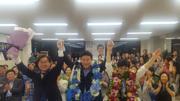 그는 "이번 지방 선거를 깨끗한 선거로 치르기 위해 노력했다"면서도 "상대 후보의 근거없는 네거티브에 구민 여러분께 다소 불편을 드린 점 너그럽게 이해해 주시기 바란다"고 몸을 낮췄다.