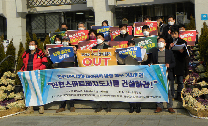 지난 26일 6개 시민 연대 단체장들 인천광역시 시청 본관 앞 기자회견