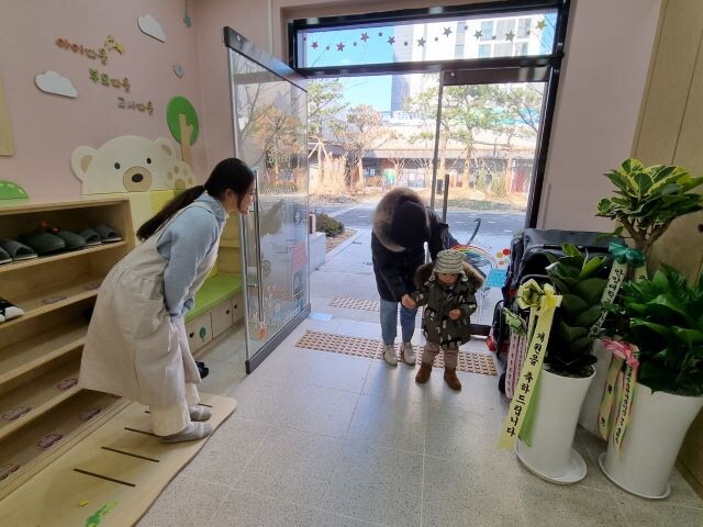 | ▲ 새로 개원한 국공립어린이집에 등원하는 어린이 모습(사진=과천시) |