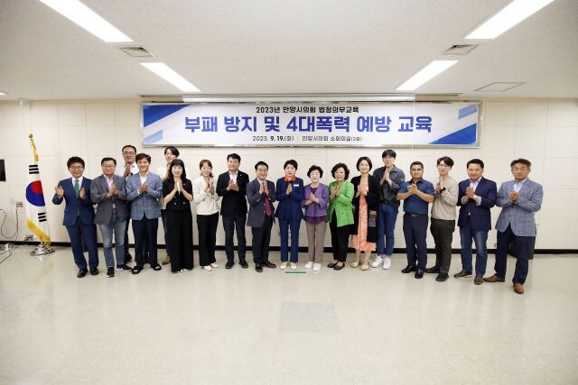[세계로컬타임즈 이종화 기자] 안양시의회는 지난 19일 시의원과 의회사무국 직원을 대상으로 부패방지 및 4대폭력 예방 교육을 실시했다.