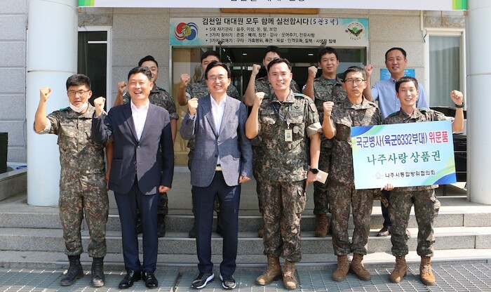 나주시통합방위협의회 의장인 윤병태 시장은 7일 지역 육군·공군부대 4곳을 방문해 위문금(나주사랑상품권)을 전달하고 각 부대 애로사항을 청취했다.