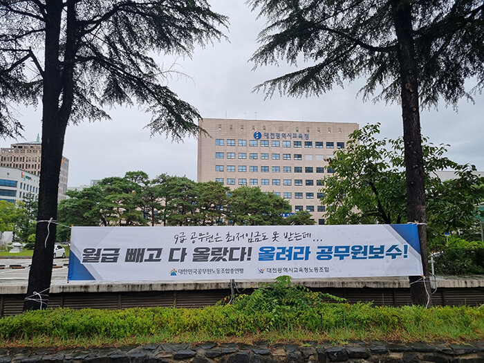 대교노(제2노조)는 2023년도 공무원 보수인상률을 결정하는 공무원보수위원회를 앞두고 대한민국공무원노동조합(위원장 석현정, 이하 공노총)이 지난 6월 23일과 27일, 7월 11일과 15일, 20일 진행한 집회와 기자회견, 1인 시위 등 대정부 투쟁에 참여해 정부에 공무원보수 인상과 일방적 희생 강요 중단을 요구했다.