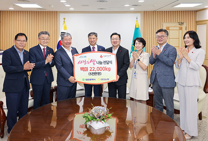 [세계로컬타임즈 민순혜 기자] 농협중앙회 대전지역본부는 19일 대전시청을 찾아 어려운 이웃을 위해 사용해달라며 대전에서 생산된 사랑의 쌀 22,000kg(5천만 원 상당)를 대전사회복지공동모금회에 기탁했다.
