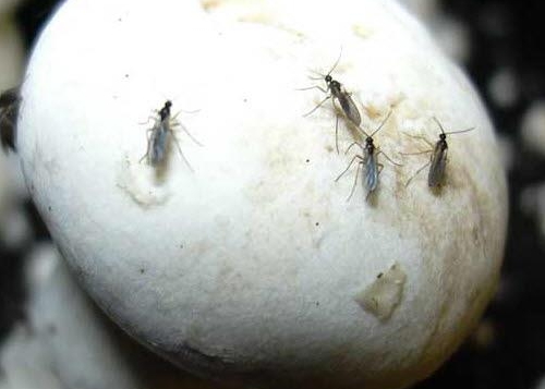 버섯파리는 갓과 대에 알을 산란하고, 부화한 유충이 균사를 갉아먹어 품질 저하 및 수량 감소를 초래하며, 심할 경우 2차 병해로까지 이어질 수 있다.
