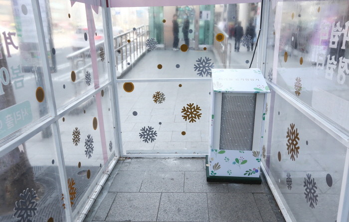 | ▲ ‘버스 부착형 미세먼지 흡착필터’로 미세먼지 저감 자치구 특화사업 공모에 선정된 서초구는 지역내 버스정류장 서리풀 이글루 총 60곳에 공기청정기를 설치, 미세먼지 대피소로 운영하고 있다.(사진=서초구 제공) |