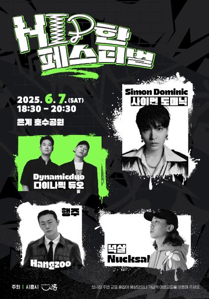 지난해에 이어 올해 두 번째로 선보이는 ‘2025 시흥 힙한 페스티벌’은 힙한 아티스트를 초청해 시민에게 신나고 역동적인 대중문화 콘텐츠를 제공하는 뮤직 페스티벌이다. 은계호수공원의 아름다운 야경을 배경으로 남녀노소 누구나 음악을 즐길 수 있는 지역 대표 공연 문화로 자리매김하고 있다.