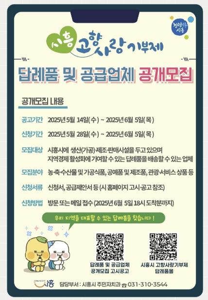 세계로컬타임즈 - 시흥시, 고향사랑기부제 답례품 및 공급업체 모집