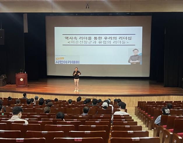 행복아산 시민아카데미 첫 번째 강연으로 진행한 이번 특강은 나라의 위기를 구한 이순신 장군과 유럽 리더를 주제로 썬킴 강사의 명쾌한 강연이 이어지며 참석한 시민들로부터 큰 호응을 받았다.