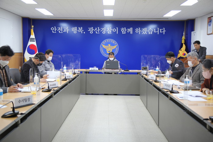[세계로컬타임즈 김준행 기자] 광주 광산경찰서(서장 김광남)에서는 17일 오전 광주광산경찰서 2층 어등홀에서 직접 현장을 담당하는 부서의 과장, 계·팀장 등 40명이 참석한 가운데 '2021년 신변보호 강화를 위한 기능별 보고회'를 가졌다.