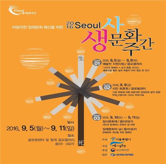 ‘2016 서울 생사문화주간’은 서울시립 장사시설을 관리 운영하는 서울시설공단이 우리나라 장례문화의 개선과 선진화를 위해 작년에 이어 올해 2번째로 개최하는 프로그램이다.