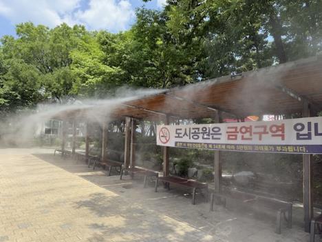 시는 지난해 환경부에서 시행한 지방자치단체 국고보조사업인 ‘기후위기 취약계층·지역 지원사업’ 공모에서 선정돼 예산을 지원받아 2곳에 쿨링포그를 설치했다.
