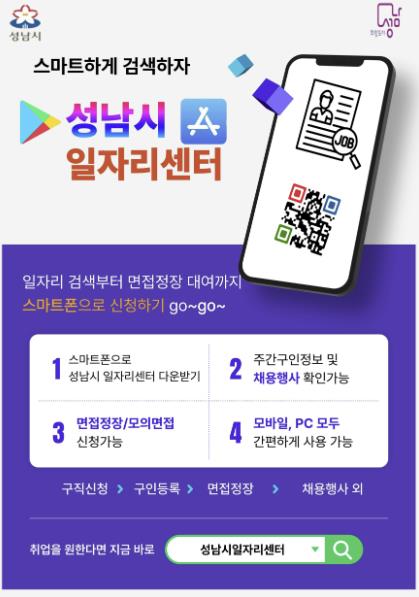 앱 이용 대상은 성남시에 거주하는 구직자와 지역 내 기업이며, 구글 플레이스토어나 애플 앱스토어에서 ‘성남시일자리센터’를 검색해 설치할 수 있다. 또한 모바일 앱 외에도 성남시일자리센터 홈페이지를 통해 관련 정보를 확인할 수 있다.