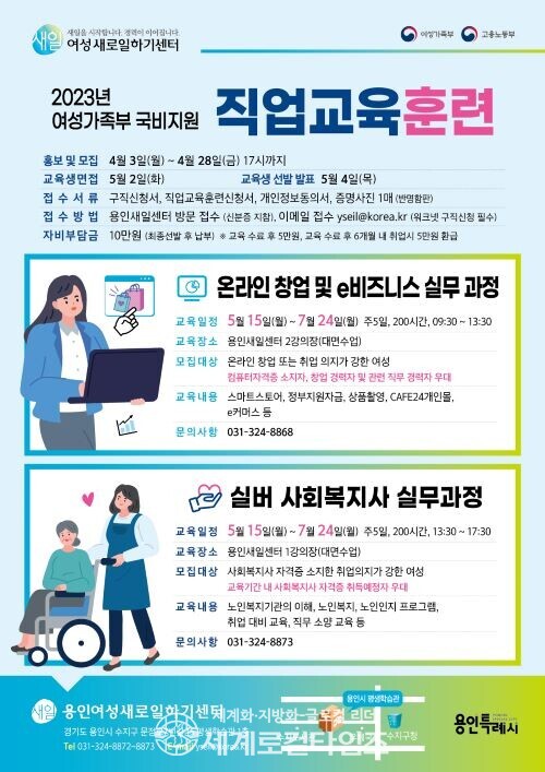 교육은 다음달 15일부터 7월 25일까지 수지구 풍덕천동 용인새일센터 강의장에서 진행된다.