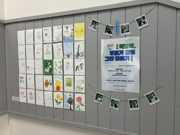시민 2,000여 명이 참여한 작품 ‘책모락, 우리가 함께 그린 이야기’는 오는 6월 27일까지, 책모락 행사 당시 진행된 이수연 작가의 드로잉 퍼포먼스 작품 ‘이수연의 그림책 여행’ 및 이수연 작가 연계도서 ‘이수연의 아주 특별한 그림책’ 등 전시는 6월 25일까지 진행된다.
