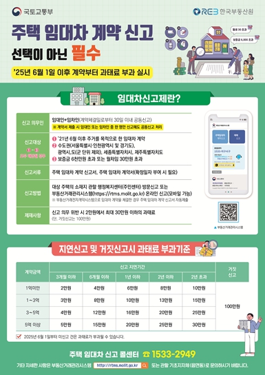 과태료는 미신고 기간과 계약금액에 따라 최소 2만 원에서 최대 30만원, 거짓 신고 시 최대 100만 원까지 부과된다. 5월 31일까지 체결된 계약은 과태료 대상에서 제외된다.