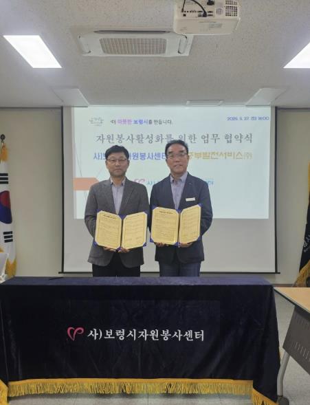 강희준 보령시자원봉사센터장은 “이번 협약을 통해 중부발전서비스 직원들의 자원봉사 활동 시간을 체계적으로 기록·관리하고, 우수자원봉사자에 대한 인정과 보상에 적극 협조하여 건강하고 행복한 보령 만들기에 기여하겠다”고 말했다.