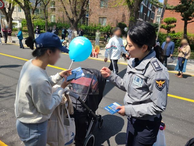 경찰은 ▲실종 예방을 위한 지문 현장 등록 ▲어린이 경찰제복체험 ▲행사장 내 공중화장실 불법카메라 점검 ▲사회적 약자 대상 범죄(가정폭력·아동학대·학교폭력) 근절을 위한 홍보물품 배부 ▲어린이 대상 교통경찰 오토바이 탑승 체험 등 다양한 주민 참여형 홍보 활동을 실시했다.
