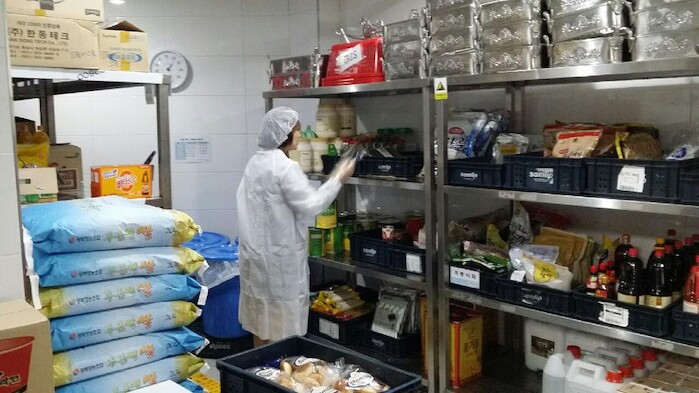 | ▲ 합동점검반이 급식으로 제공되는 식품 유통기한을 점검하고 있다. (사진=용인시) |