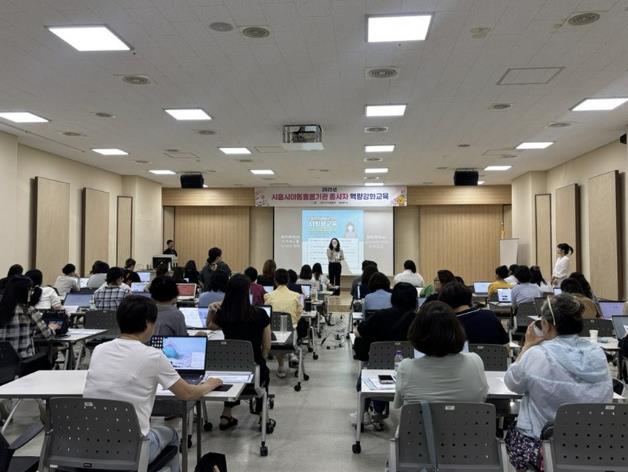 이날 교육은 김근태 강사(비영리마케팅연구소 복지꿀팁 대표)가 맡아 실습 위주로 진행됐으며, 교육 내용은 챗지피티(GPT) 등 생성형 인공지능을 활용한 일지 작성을 비롯해 아동 발달 기록 정리, 홍보자료 제작 등 실무 중심으로 구성됐다. 참가자들은 실제 돌봄 업무에 활용할 수 있는 인공지능 도구 사용법을 집중적으로 익혔다.