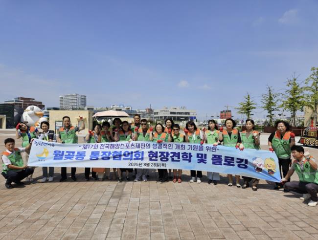 같은 날, 월곶동 통장협의회도 제전의 성공적 개최를 기원하며 대회 현장을 방문해 플로깅 활동을 벌였다. 회원들은 지난 7월 개관한 해양생태과학관을 관람하고, 주요 행사장이 위치한 거북섬 일대를 둘러보며 성공적 대회 운영을 위한 의견을 나눴다. 이후 행사장 주변과 산책로 일대에서 쓰레기를 수거하며 환경정화에도 동참했다.